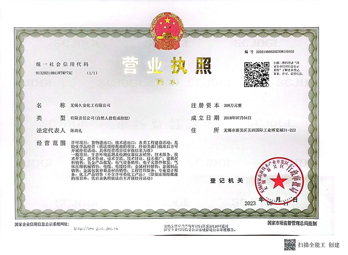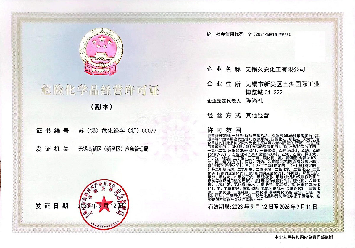 無錫久安化工有限公司成立于2018年,位于無錫錫山區(qū)是一家專業(yè)的工業(yè)氣體供應(yīng)商,無錫久安化工生產(chǎn)與銷售各種氣體、工業(yè)氣體、高純度氣體、特種氣體體、電子氣體、稀有氣體等多種產(chǎn)品:氧氣、氮氣、氬氣、二氧化碳、混合氣等工業(yè)氣體;液氧、液氮、液氬、液二氧化碳、等液態(tài)氣體;乙炔、丙烷、氫氣、高純氣、特氣等特殊氣體等。